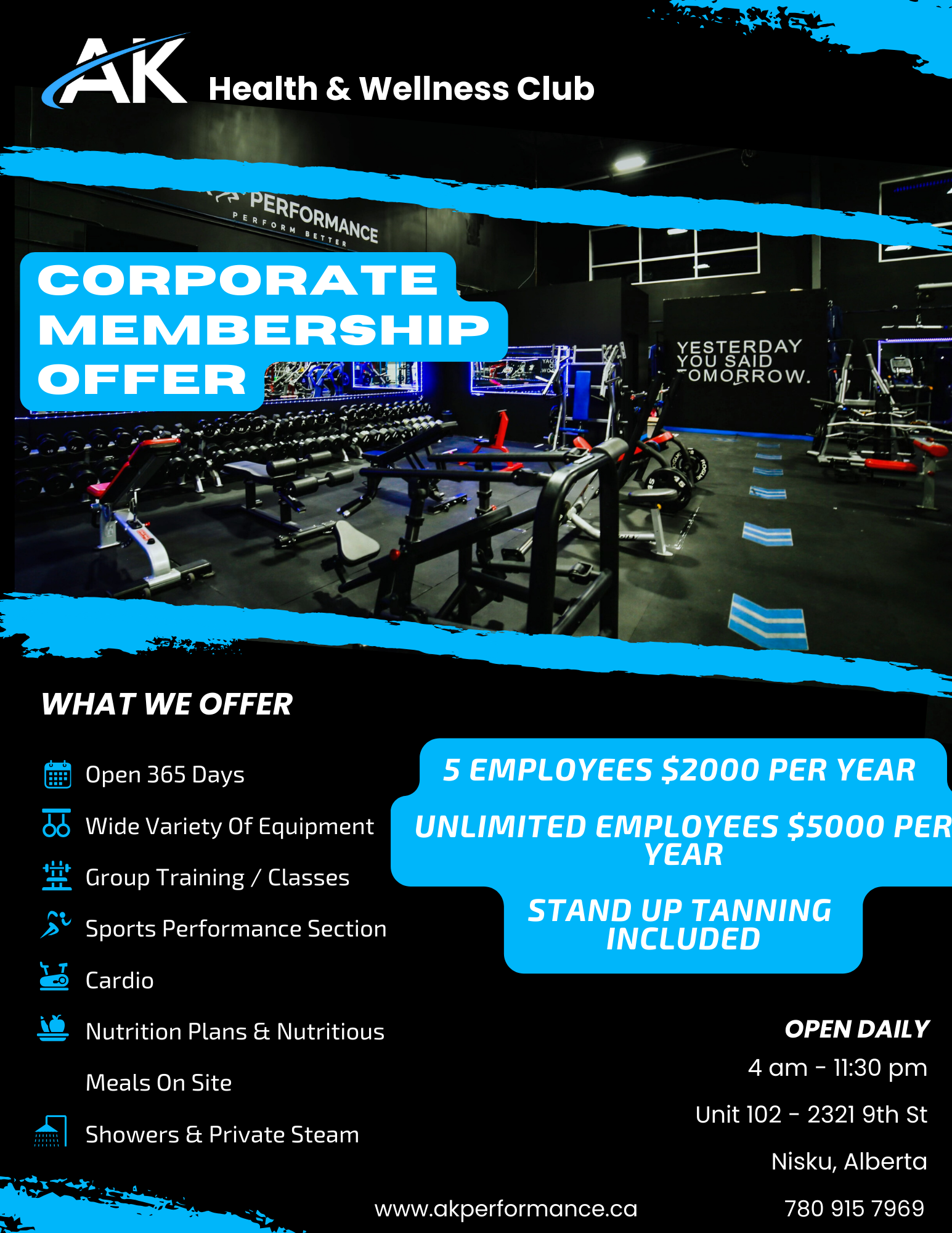 We offer flexible membership options to suit your budget and needs. Ask us about our exclusive corporate rates for you and your employees!